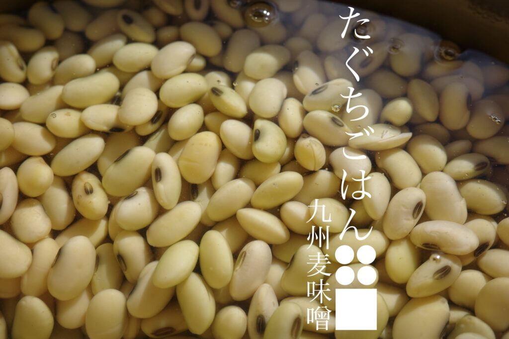 大豆と麦麹が材料の九州麦味噌を仕込みます。